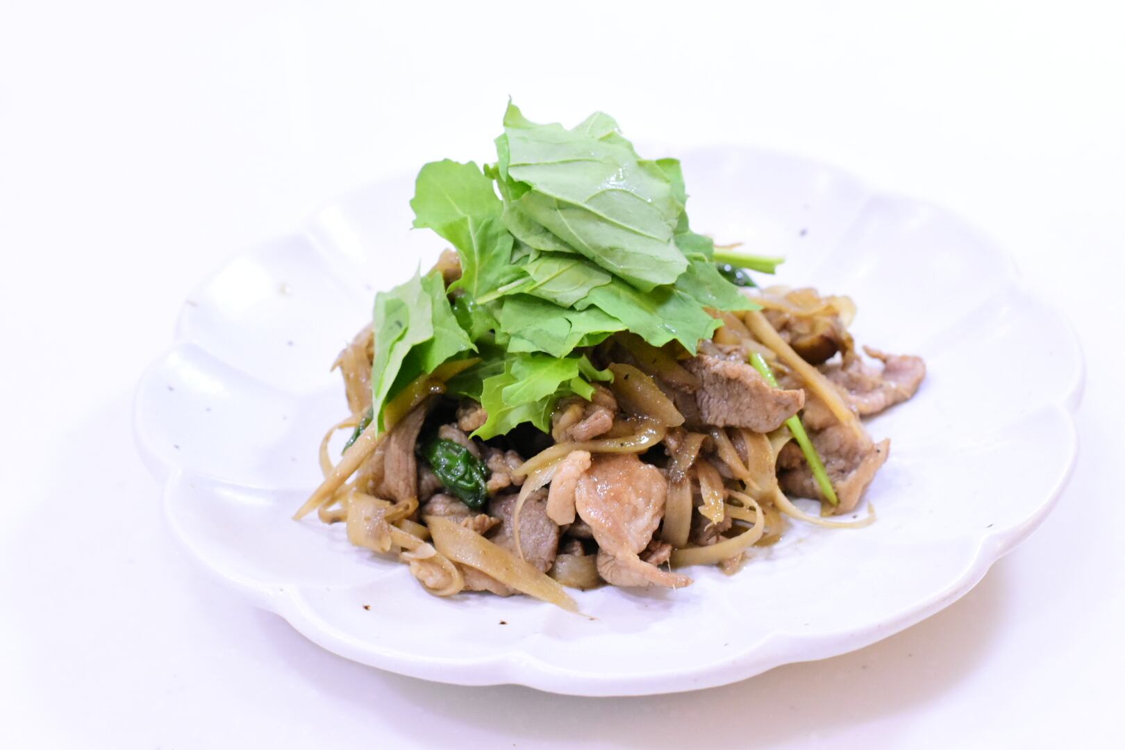 ・ゴボウと牛肉とクレソンのバルサミコ炒め